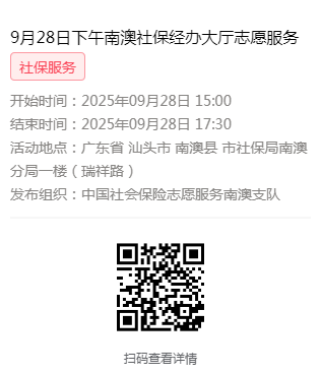 2025年9月28日至9月30日市社保局南澳分局大厅志愿服务活动,需要每一个可爱的你参与!
