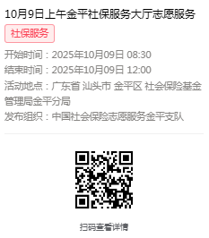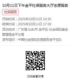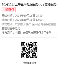 2025年10月9日至10月11日市社保局金平分局大厅志愿服务活动,需要每一个可爱的你参与!