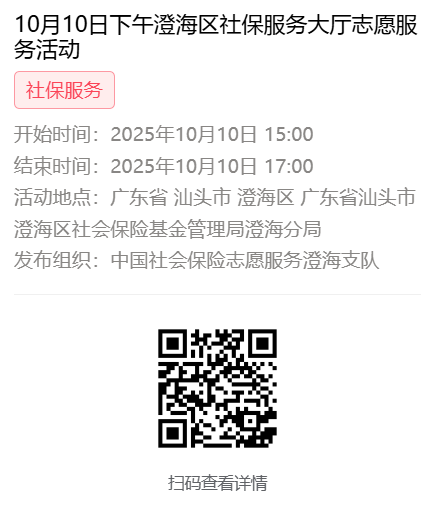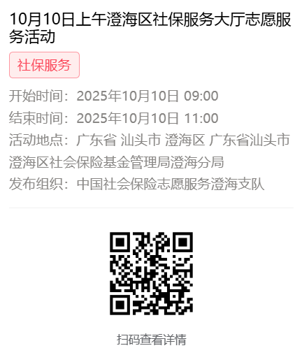 2025年10月9日至10月11日市社保局澄海分局大厅志愿服务活动,需要每一个可爱的你参与!