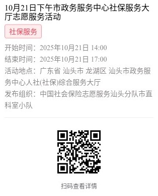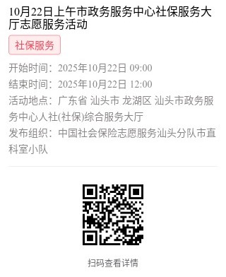为充分保障我市社保志愿者权益,自2022年10月18日起,报名参加汕头市社保局和各分局志愿活动的同志须持有志愿者证并已激活,请各位志愿者遵照执行。
