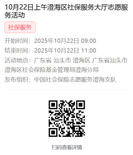 2025年10月20日至10月24日市社保局澄海分局大厅志愿服务活动,需要每一个可爱的你参与!