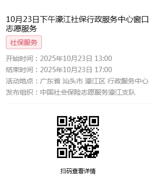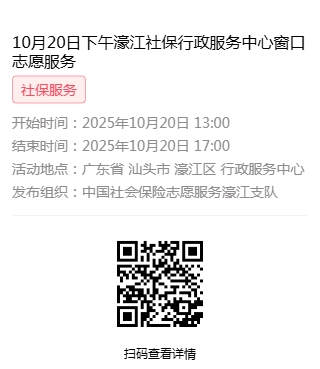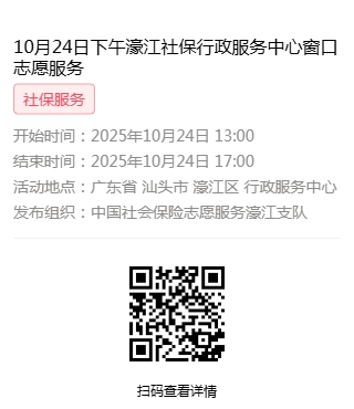 2025年10月20日至2025年10月24日市社保局濠江分局驻行政服务中心窗口志愿服务活动,需要每一个可爱的你参与!