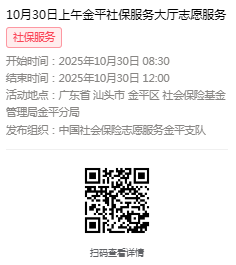 2025年10月27日至10月31日市社保局金平分局大厅志愿服务活动,需要每一个可爱的你参与!