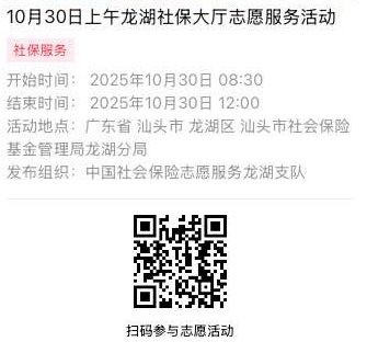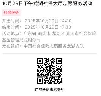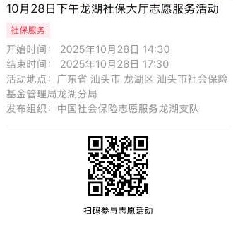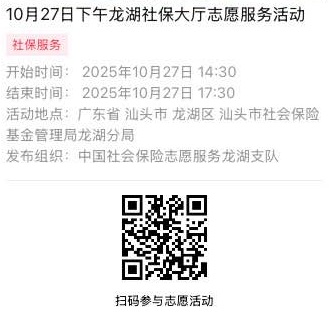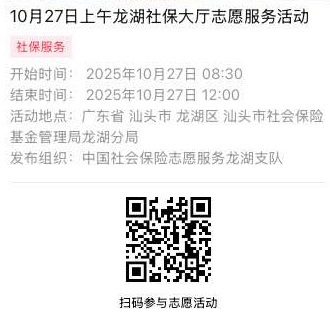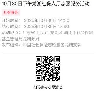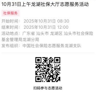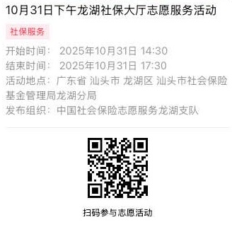 2025年10月27日至2025年10月31日市社保局龙湖分局大厅志愿服务活动,需要每一个可爱的你参与!