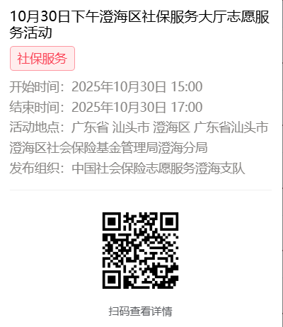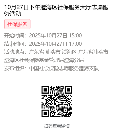 2025年10月27日至10月31日市社保局澄海分局大厅志愿服务活动,需要每一个可爱的你参与!