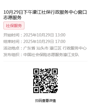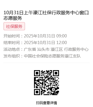 2025年10月27日至2025年10月31日市社保局濠江分局驻行政服务中心窗口志愿服务活动,需要每一个可爱的你参与!