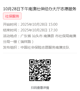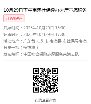 2025年10月27日至10月31日市社保局南澳分局大厅志愿服务活动,需要每一个可爱的你参与!