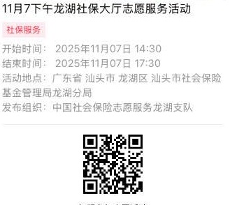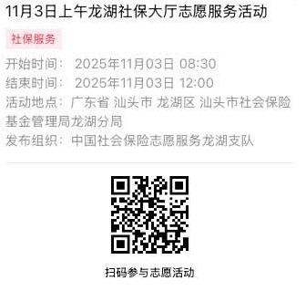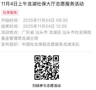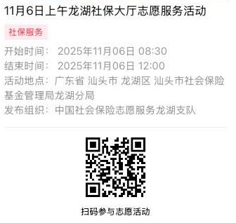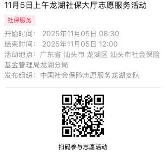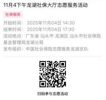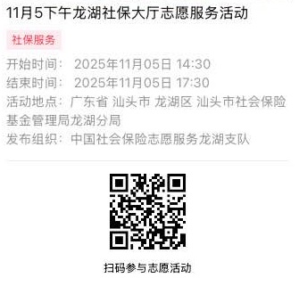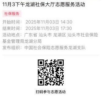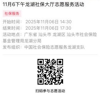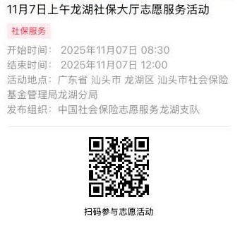 2025年11月3日至2025年11月7日市社保局龙湖分局大厅志愿服务活动,需要每一个可爱的你参与!