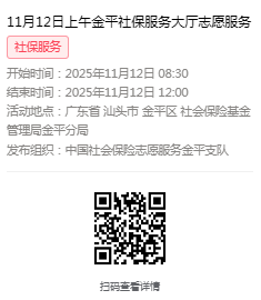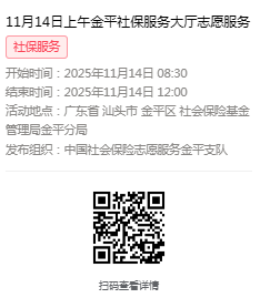 2025年11月10日至11月14日市社保局金平分局大厅志愿服务活动报名链接