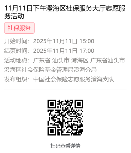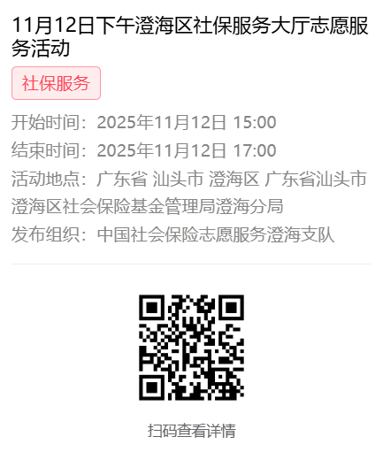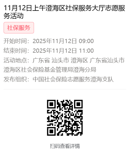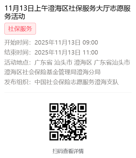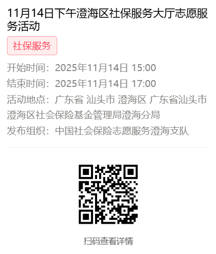 2025年11月10日至11月14日市社保局澄海分局大厅志愿服务活动,需要每一个可爱的你参与!