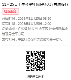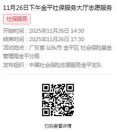 2025年11月24日至11月28日市社保局金平分局大厅志愿服务活动,需要每一个可爱的你参与!