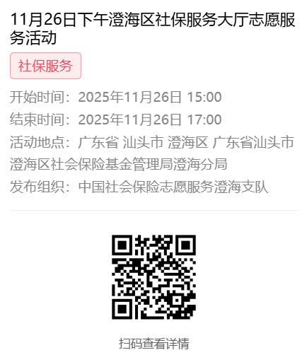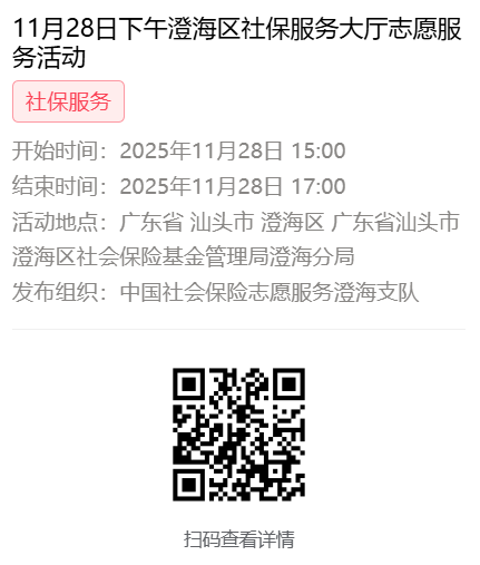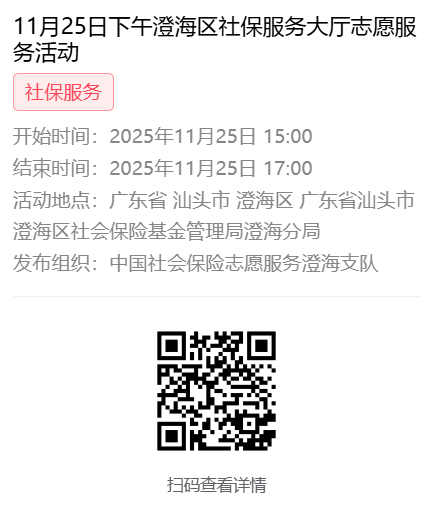 2025年11月24日至11月28日市社保局澄海分局大厅志愿服务活动,需要每一个可爱的你参与!