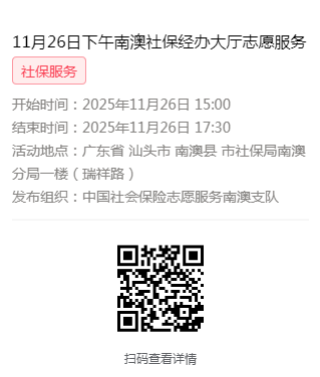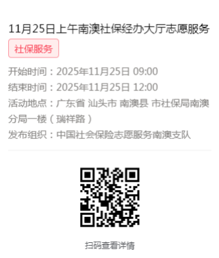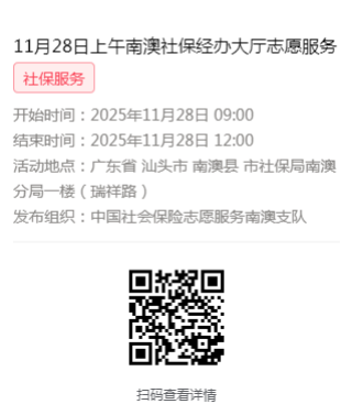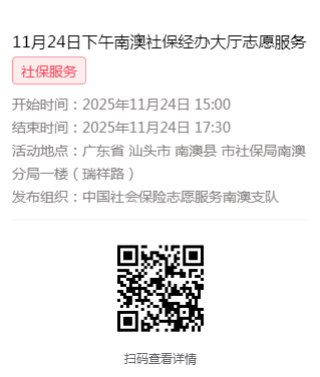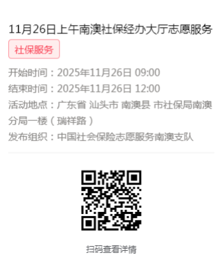 2025年11月24日至11月28日市社保局南澳分局大厅志愿服务活动,需要每一个可爱的你参与!