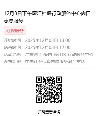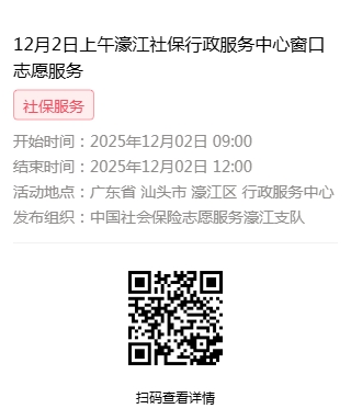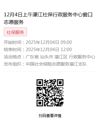 2025年12月1日至2025年12月5日市社保局濠江分局驻行政服务中心窗口志愿服务活动,需要每一个可爱的你参与!