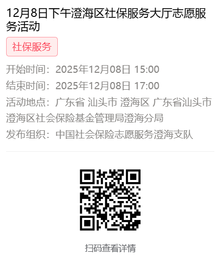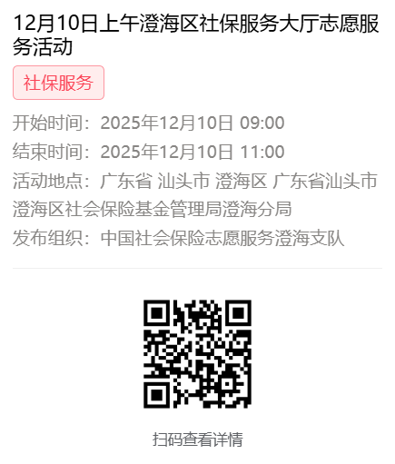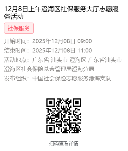 2025年12月8日至12月12日市社保局澄海分局大厅志愿服务活动,需要每一个可爱的你参与!