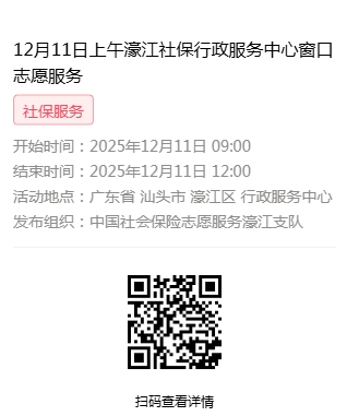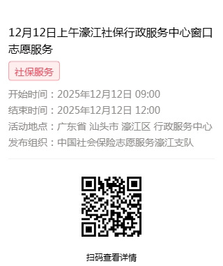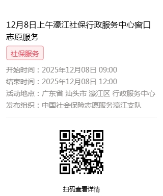 2025年12月8日至2025年12月12日市社保局濠江分局驻行政服务中心窗口志愿服务活动,需要每一个可爱的你参与!