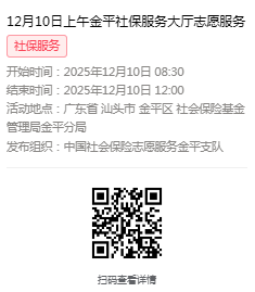 2025年12月8日至12月12日市社保局金平分局大厅志愿服务活动,需要每一个可爱的你参与!