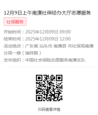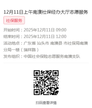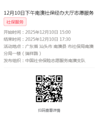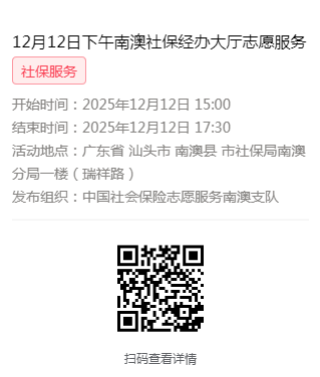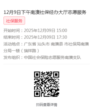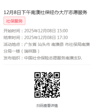 2025年12月8日至12月12日市社保局南澳分局大厅志愿服务活动,需要每一个可爱的你参与!