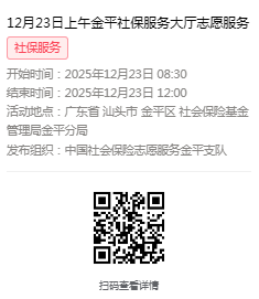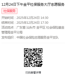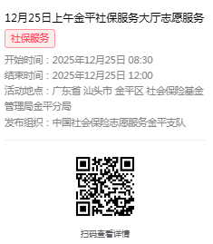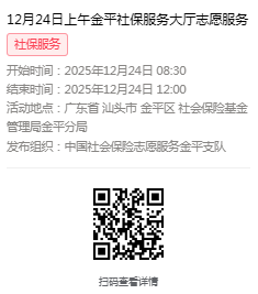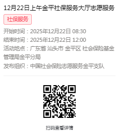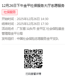 2025年12月22日至12月26日市社保局金平分局大厅志愿服务活动,需要每一个可爱的你参与!