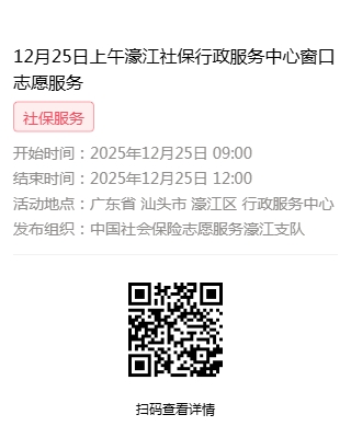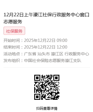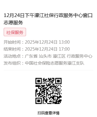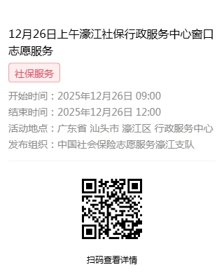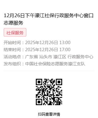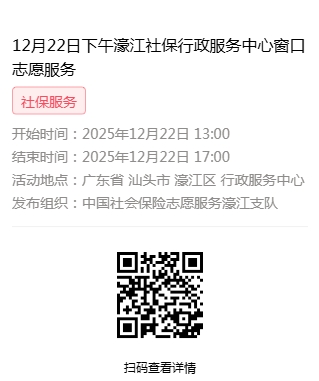 2025年12月22日至2025年12月26日市社保局濠江分局驻行政服务中心窗口志愿服务活动,需要每一个可爱的你参与!