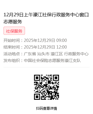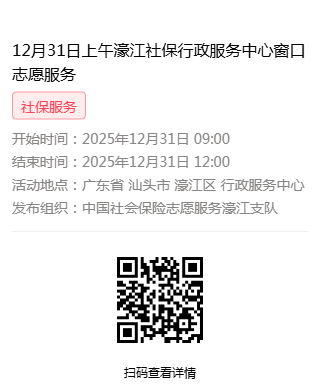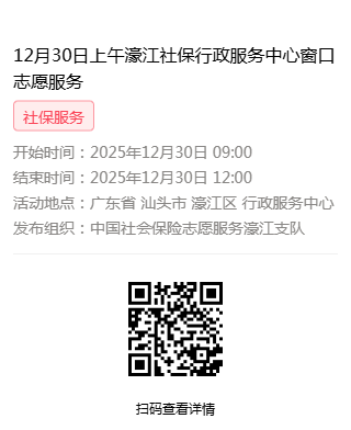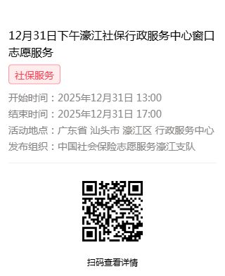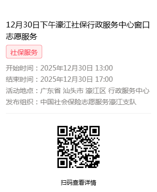 2025年12月29日至2025年12月31日市社保局濠江分局驻行政服务中心窗口志愿服务活动,需要每一个可爱的你参与!