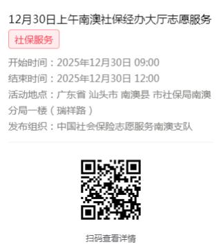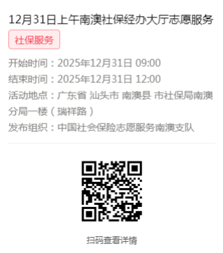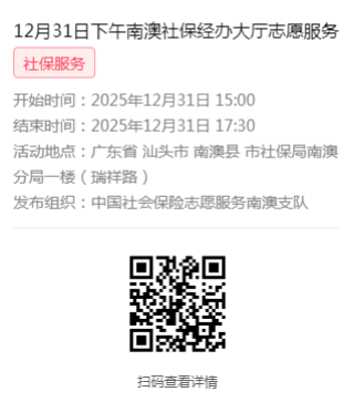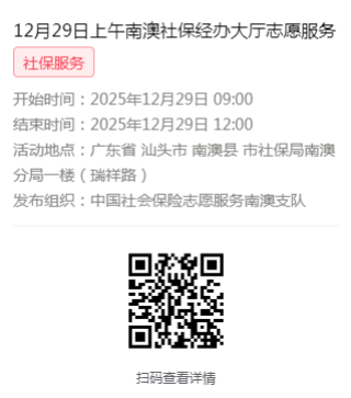 2025年12月29日至12月31日市社保局南澳分局大厅志愿服务活动,需要每一个可爱的你参与!