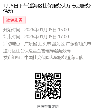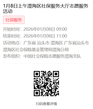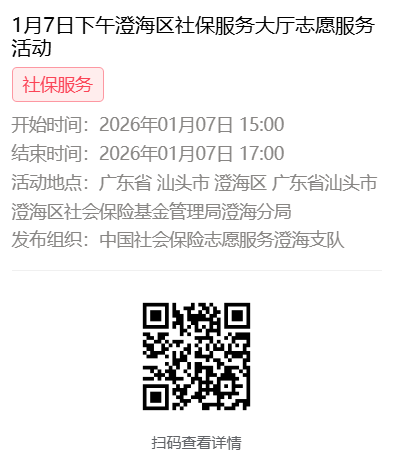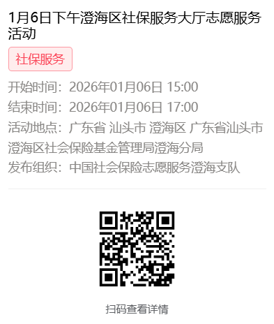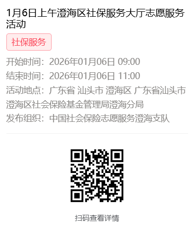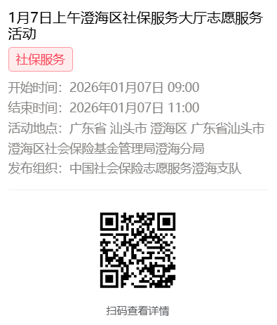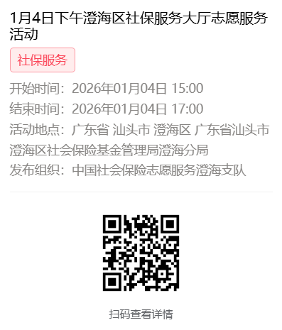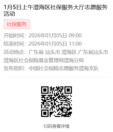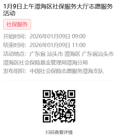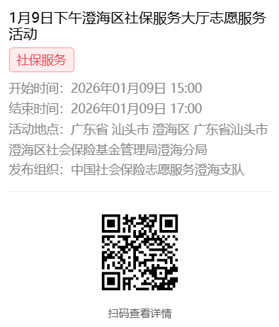 2026年1月4日至1月9日市社保局澄海分局大厅志愿服务活动,需要每一个可爱的你参与!