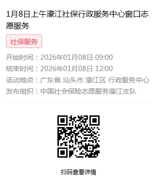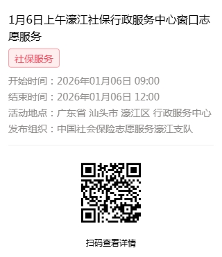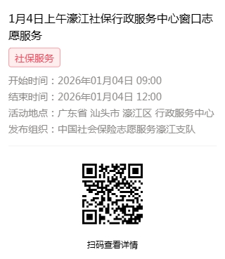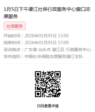 2026年1月4日至2026年1月9日市社保局濠江分局驻行政服务中心窗口志愿服务活动,需要每一个可爱的你参与!