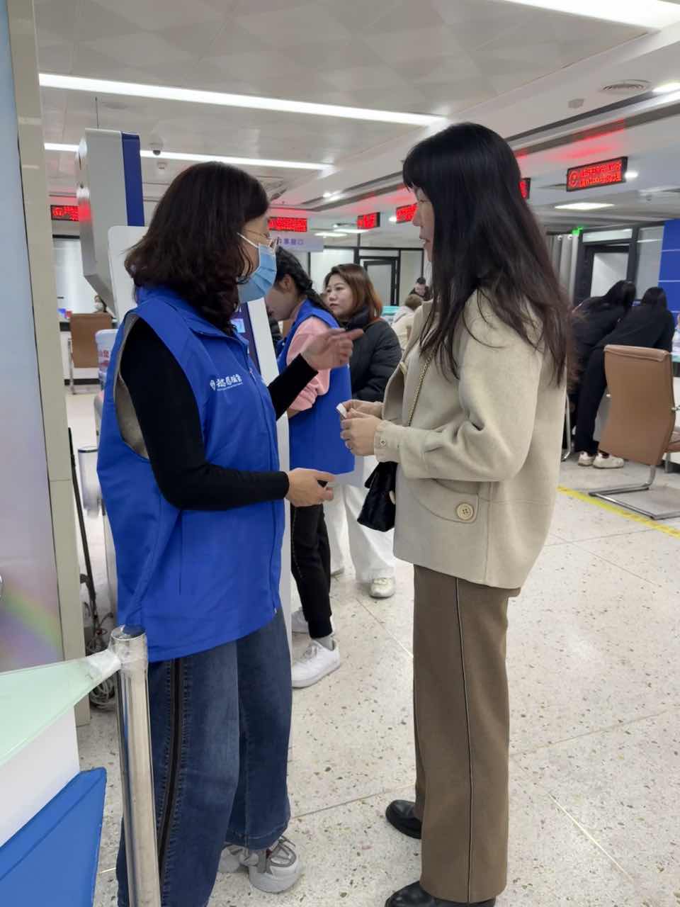 志愿者主要协助维持服务大厅秩序、为前来办事的群众提供办事指引、引导使用取号机取号,与工作人员一起为市民群众提供高质量服务!