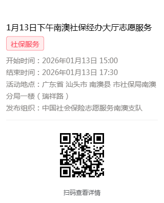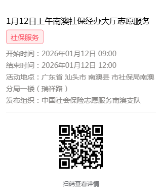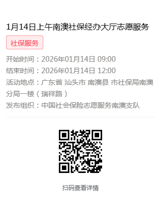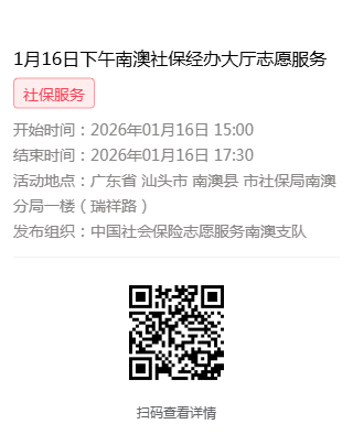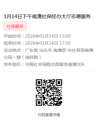 2026年1月12日至1月16日市社保局南澳分局大厅志愿服务活动,需要每一个可爱的你参与!