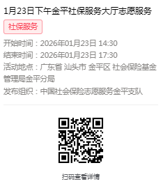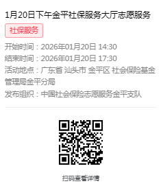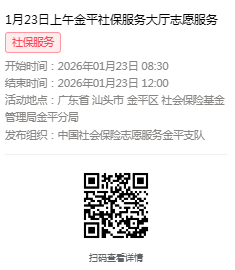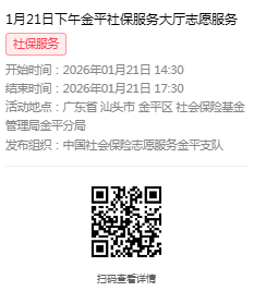 2026年1月19日至1月23日市社保局金平分局大厅志愿服务活动,需要每一个可爱的你参与!