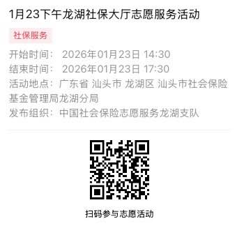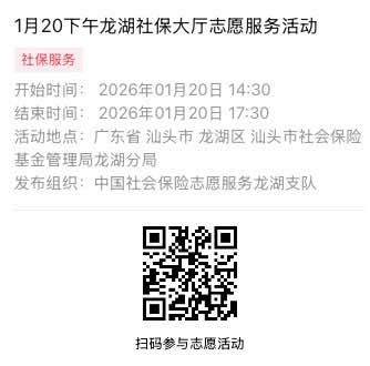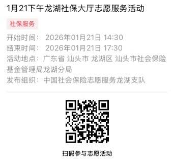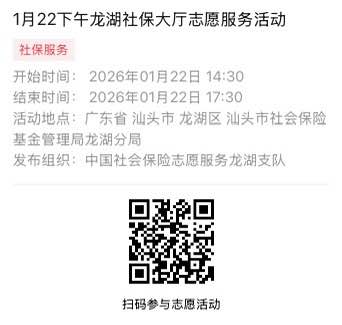 2026年1月19日至2026年1月23日市社保局龙湖分局大厅志愿服务活动,需要每一个可爱的你参与!