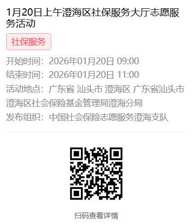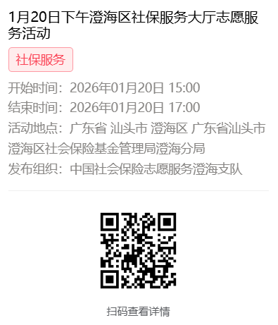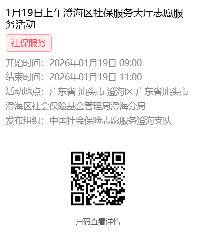 2026年1月19日至1月23日市社保局澄海分局大厅志愿服务活动,需要每一个可爱的你参与!