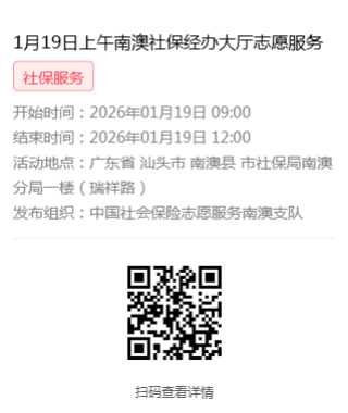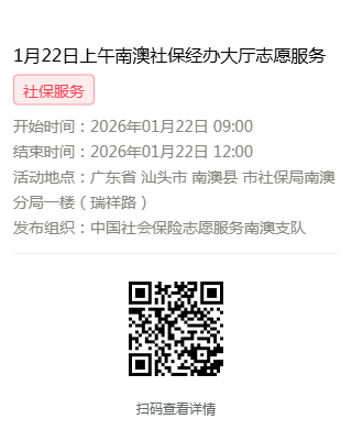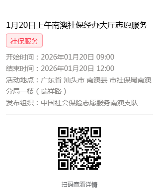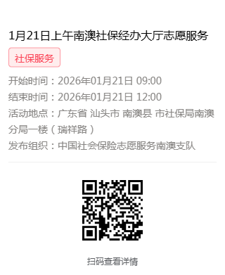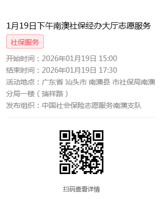 2026年1月19日至1月23日市社保局南澳分局大厅志愿服务活动,需要每一个可爱的你参与!