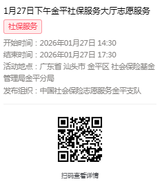 2026年1月26日至1月30日市社保局金平分局大厅志愿服务活动,需要每一个可爱的你参与!