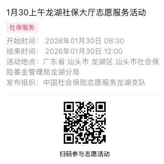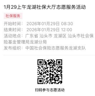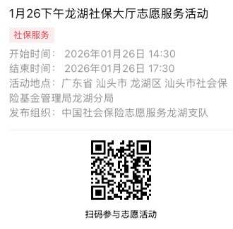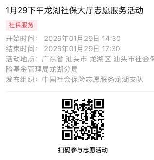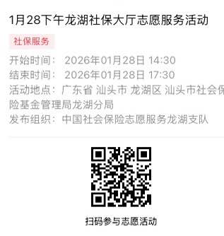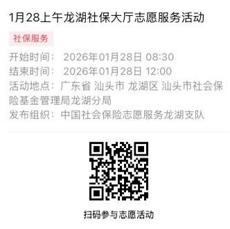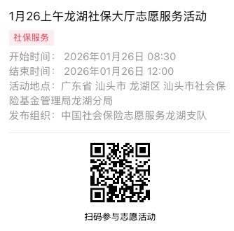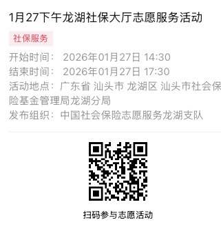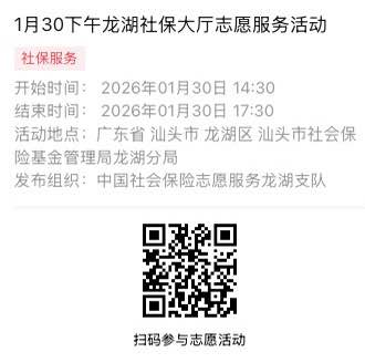 2026年1月26日至2026年1月30日市社保局龙湖分局大厅志愿服务活动,需要每一个可爱的你参与!