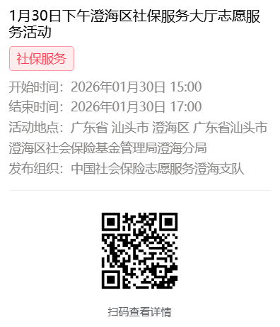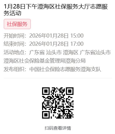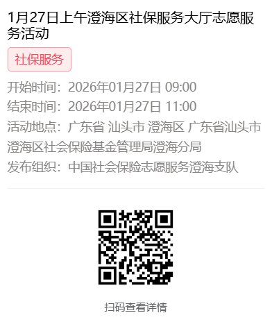 2026年1月26日至1月30日市社保局澄海分局大厅志愿服务活动,需要每一个可爱的你参与!