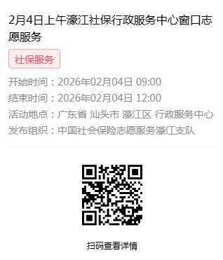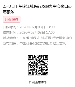 2026年2月2日至2026年2月6日市社保局濠江分局驻行政服务中心窗口志愿服务活动,需要每一个可爱的你参与!