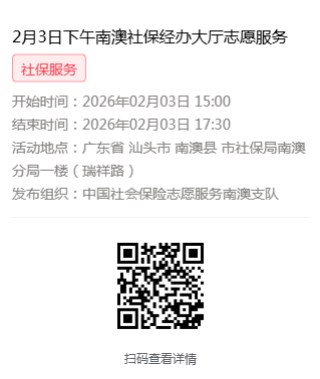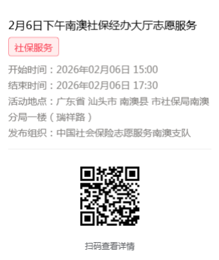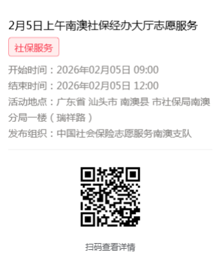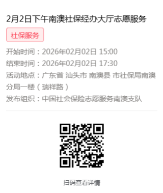 2026年2月2日至2月6日市社保局南澳分局大厅志愿服务活动,需要每一个可爱的你参与!