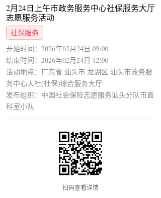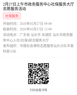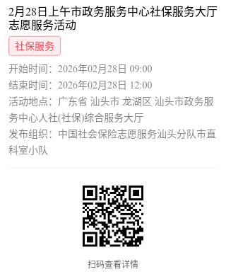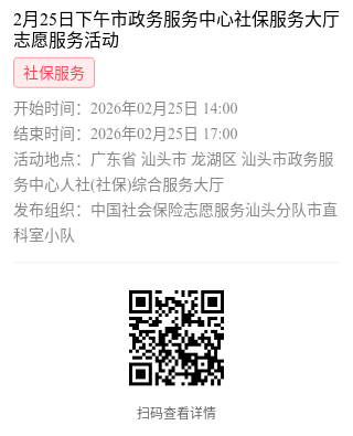 为充分保障我市社保志愿者权益,自2022年10月18日起,报名参加汕头市社保局和各分局志愿活动的同志须持有志愿者证并已激活,请各位志愿者遵照执行。