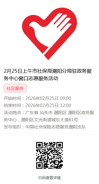 2026年2月24日至2月28日市社保局潮阳分局驻政务服务中心窗口志愿服务活动,需要每一个可爱的你参与!
