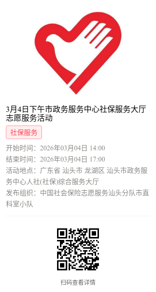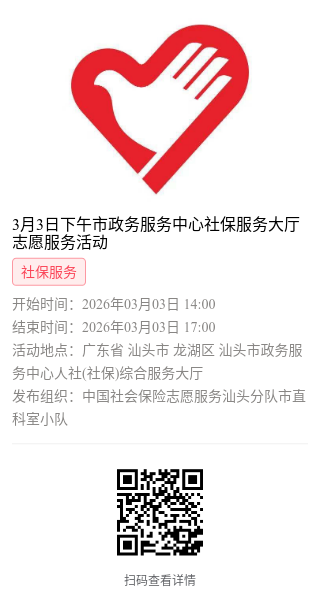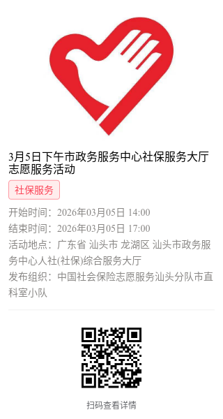第一步:加入“中国社会保险志愿服务汕头分队”或下属各支队