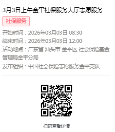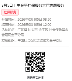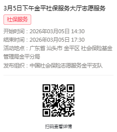 2026年3月2日至3月6日市社保局金平分局大厅志愿服务活动,需要每一个可爱的你参与!