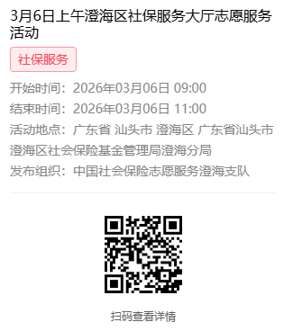 2026年3月2日至3月6日市社保局澄海分局大厅志愿服务活动,需要每一个可爱的你参与!