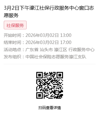 2026年3月2日至2026年3月6日市社保局濠江分局驻行政服务中心窗口志愿服务活动,需要每一个可爱的你参与!