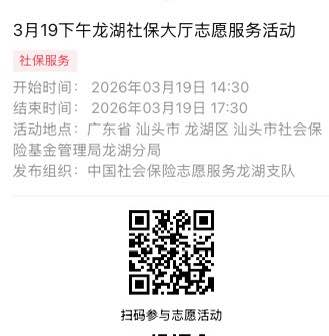 2026年3月16日至2026年3月20日市社保局龙湖分局大厅志愿服务活动,需要每一个可爱的你参与!