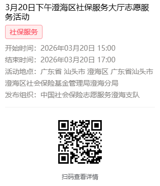 2026年3月16日至3月20日市社保局澄海分局大厅志愿服务活动,需要每一个可爱的你参与!