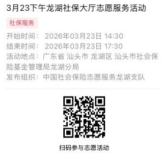 2026年3月23日至2026年3月27日市社保局龙湖分局大厅志愿服务活动,需要每一个可爱的你参与!