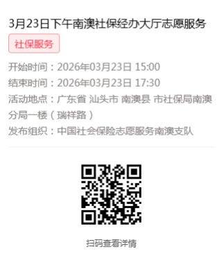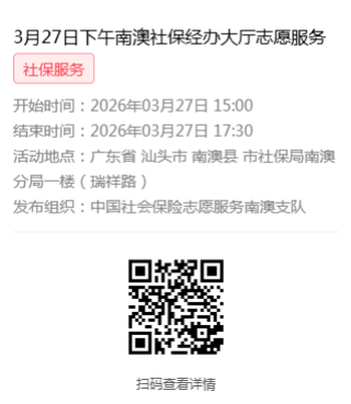 2026年3月23日至3月27日市社保局南澳分局大厅志愿服务活动,需要每一个可爱的你参与!