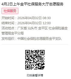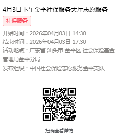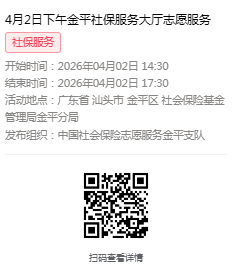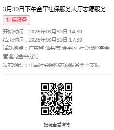2026年3月30日至4月3日市社保局金平分局大厅志愿服务活动,需要每一个可爱的你参与!